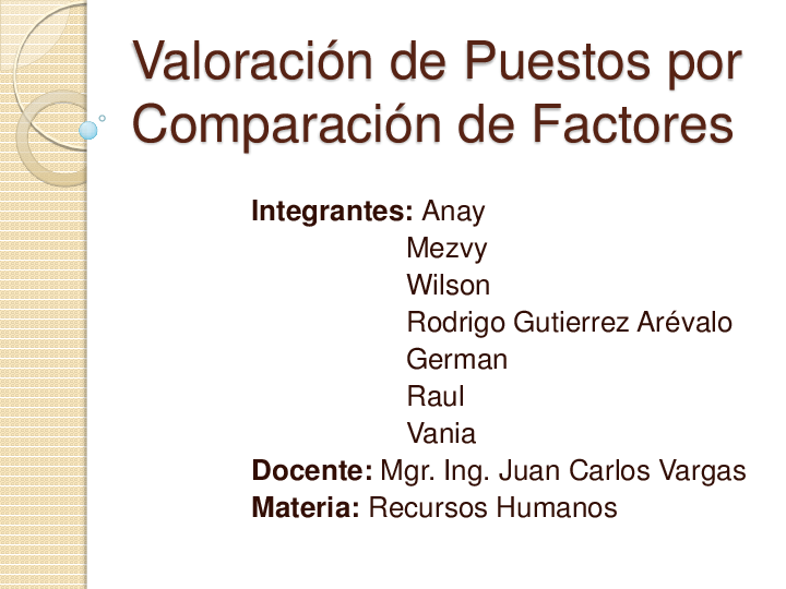 (PPT) Valoración de Puestos por Comparación de Factores Rodrigo Gutierrez Arévalo Academia.edu