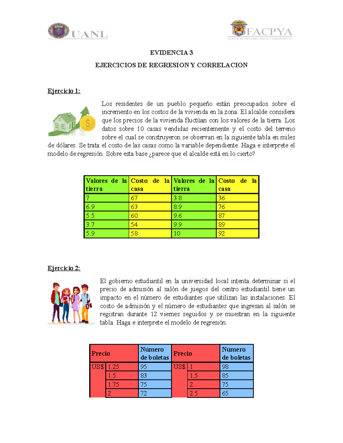 Evidencia 3 Regresion y Correlación EVIDENCIA 3 EJERCICIOS DE REGRESION Y CORRELACION