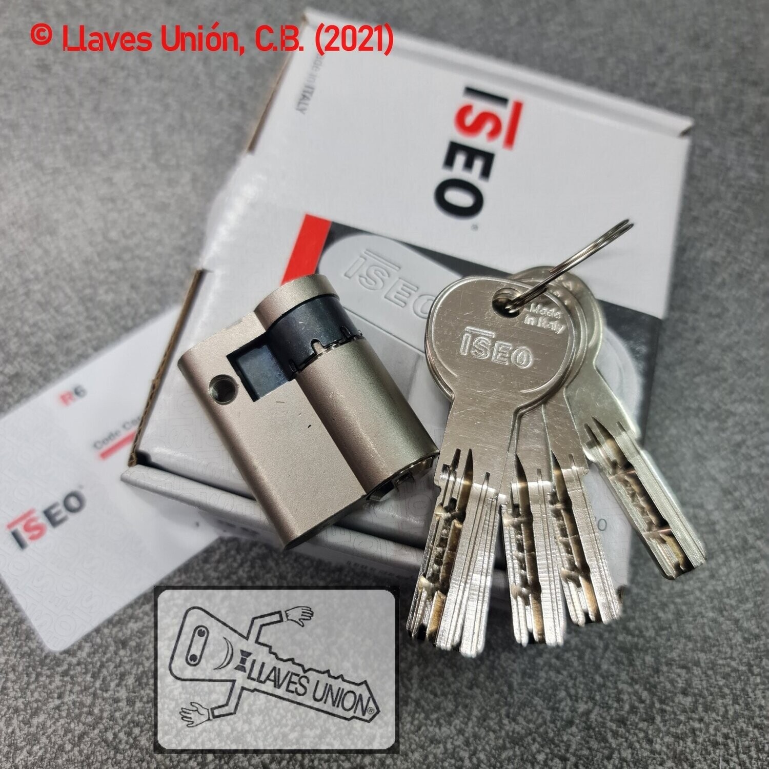 Cilindro ISEO R6 30x10 mm. Niquelado. Llave Seguridad. Leva Larga