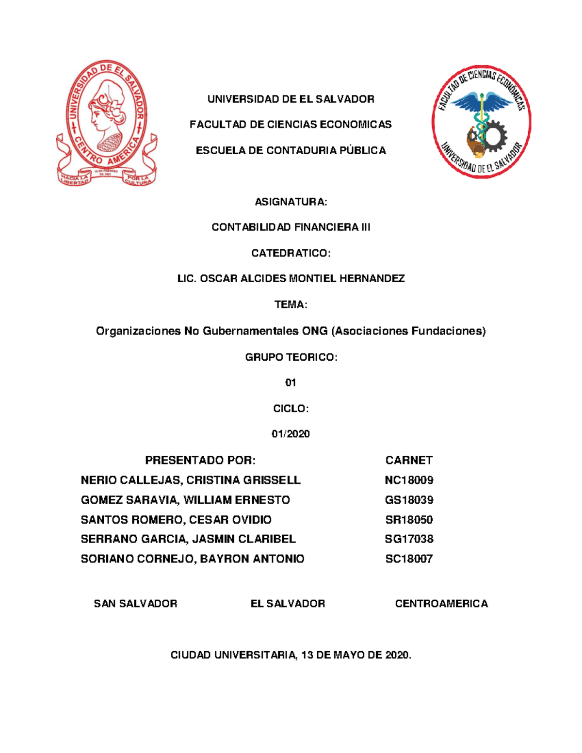 Asociaciones y Fundaciones sin fines de lucro UNIVERSIDAD DE EL