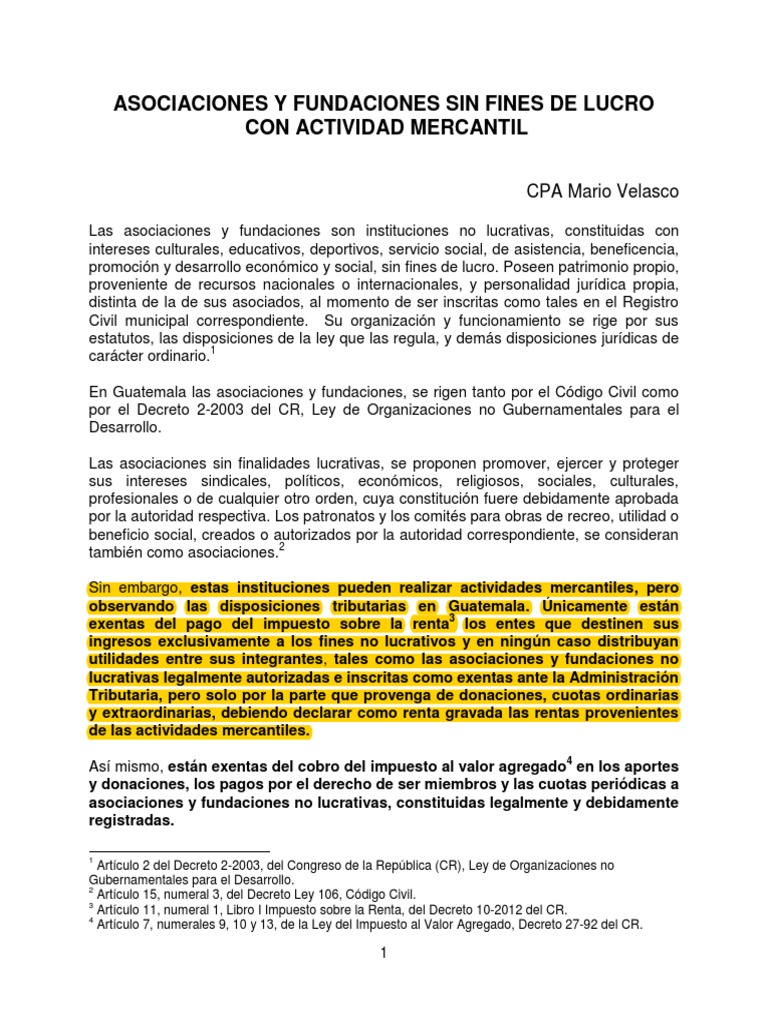 ASPECTOS TRIBUTARIOS DE LAS ASOCIACIONES SIN FINES DE LUCRO. Publicado en 17 agosto, 2016 por JENNY PEÑA CASTILLO. [Visto: 46467 veces] El Art. 2º inciso 13 de la Constitución Política del Perú reconoce el derecho de toda persona a asociarse y de constituir fundaciones y diversas formas de organización jurídica sin fines de lucro, sin.