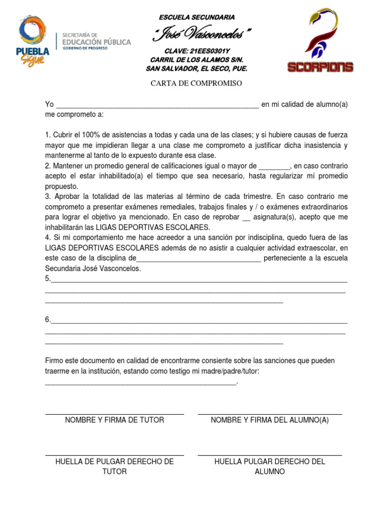 Carta Compromiso Deportivo PDF