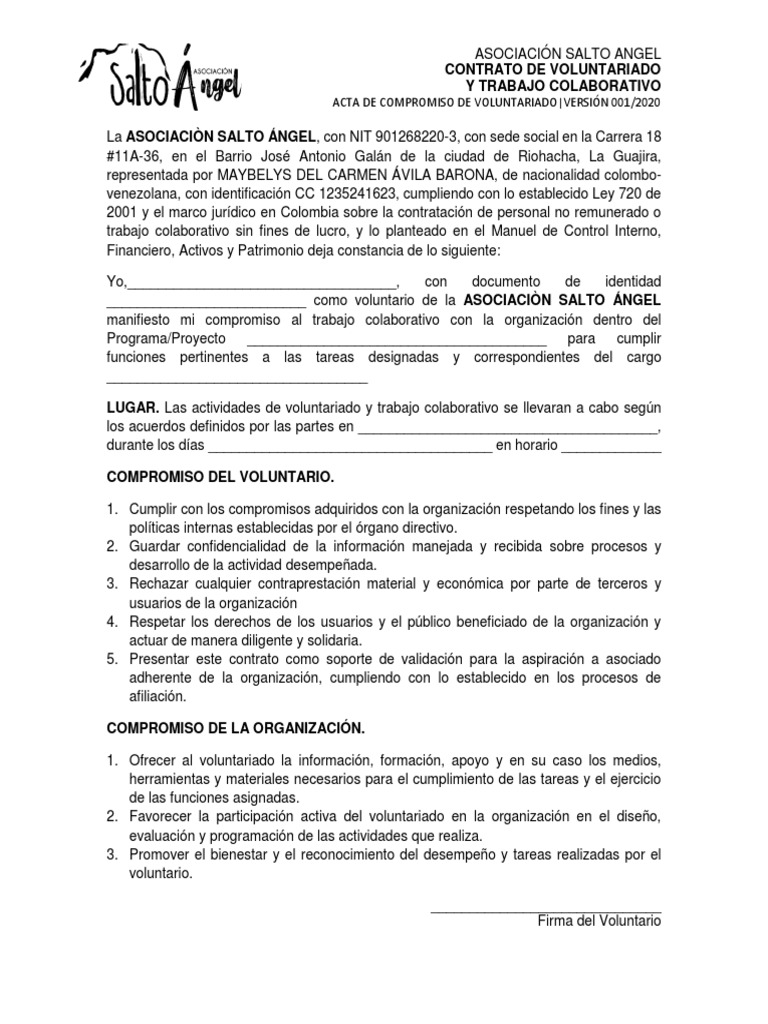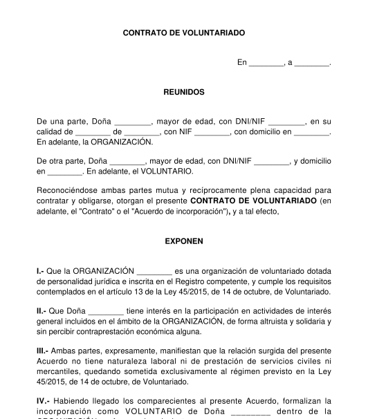 Contrato de Voluntariado (Formato) PDF Trabajar como voluntario Business