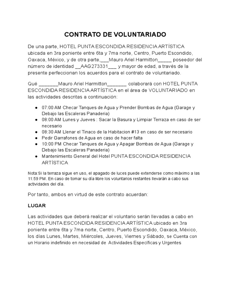 Modelo Contrato Para Voluntariado WORD Plantilla
