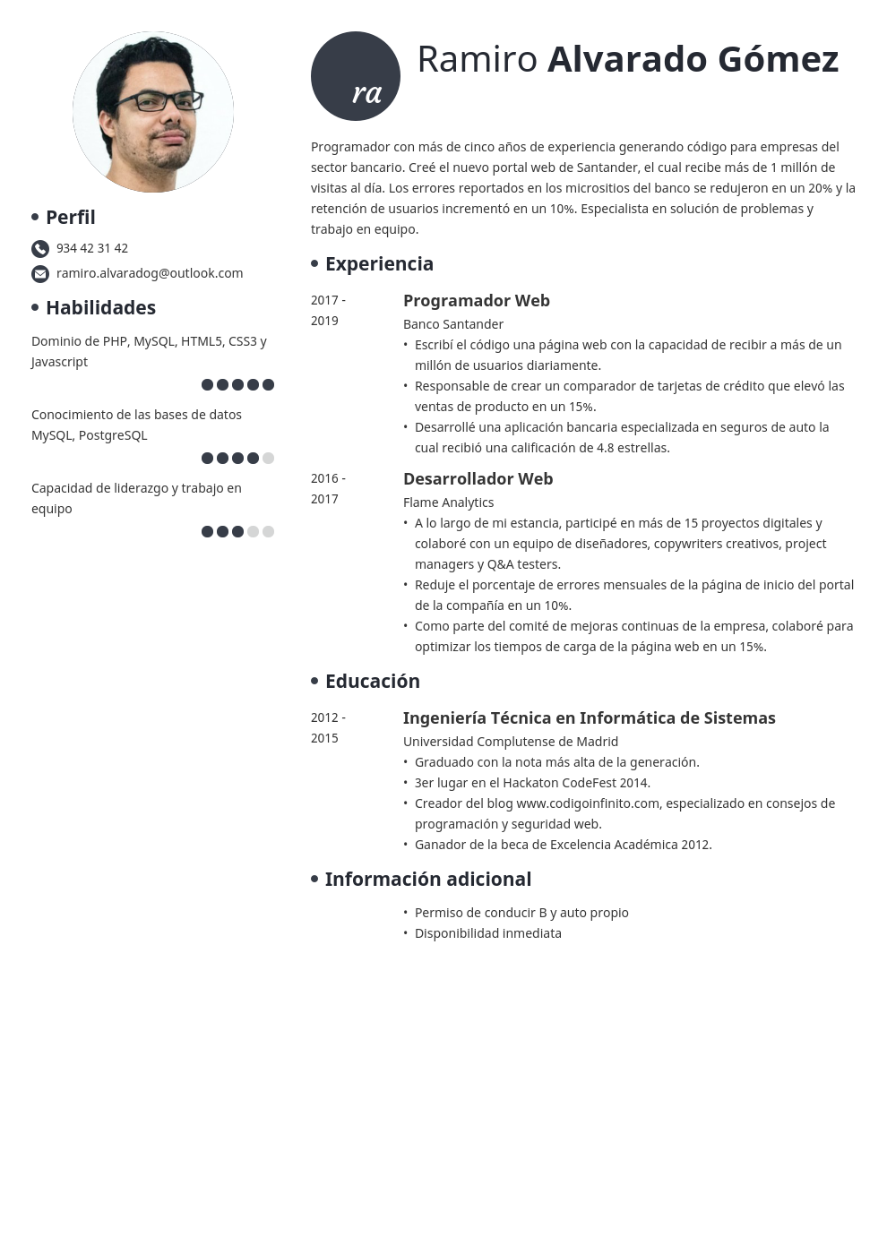 Currículum de Programador + Ejemplo de CV Desarrollador Web (2023)