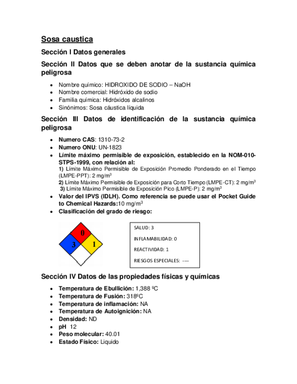 (DOC) Sosa caustica Sección I Datos generales Sección II Datos que se