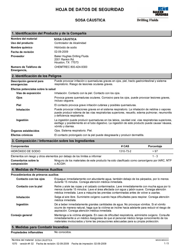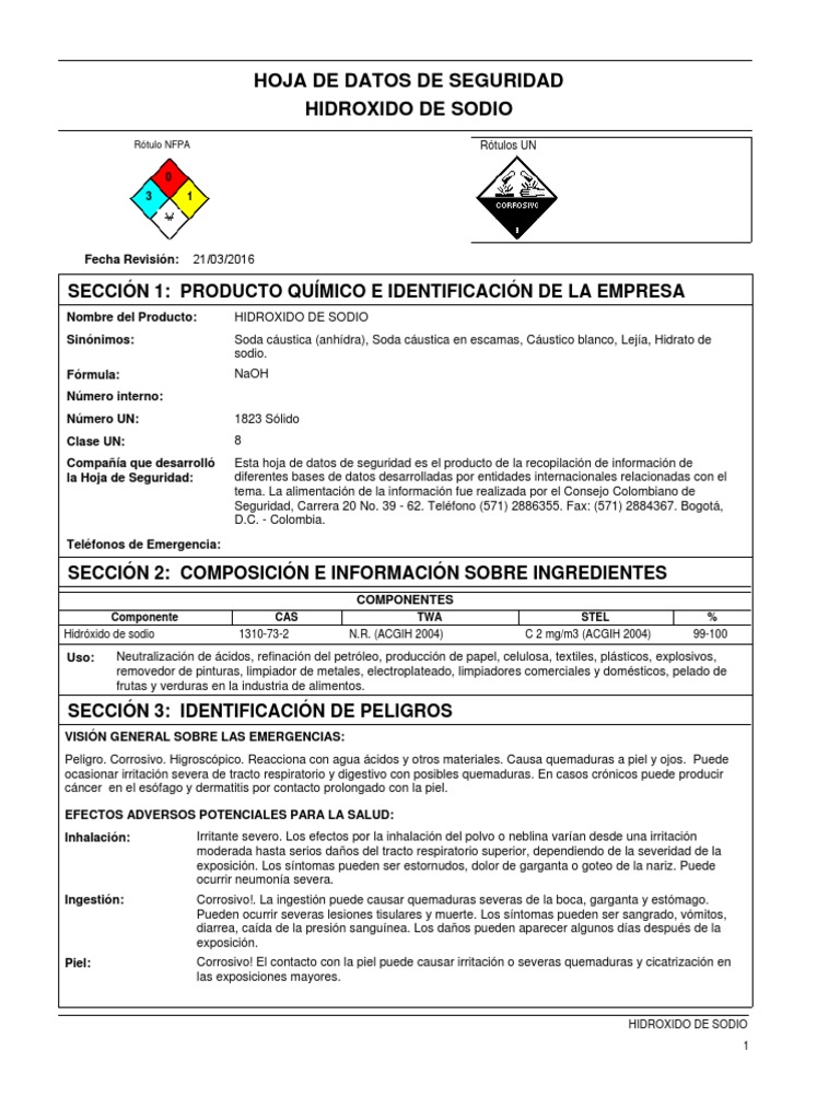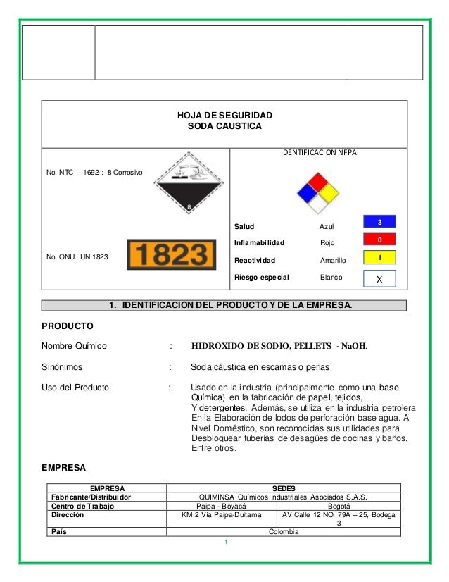 MSDS Soda Caustica 50 Formula Quimica NaOH Direccion Telefono E