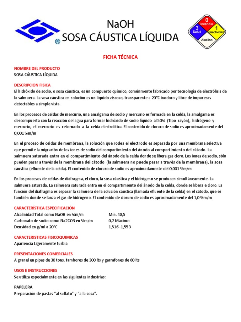 Ficha Tecnica Sosa Liquida Clorotec PDF Hidróxido de sodio