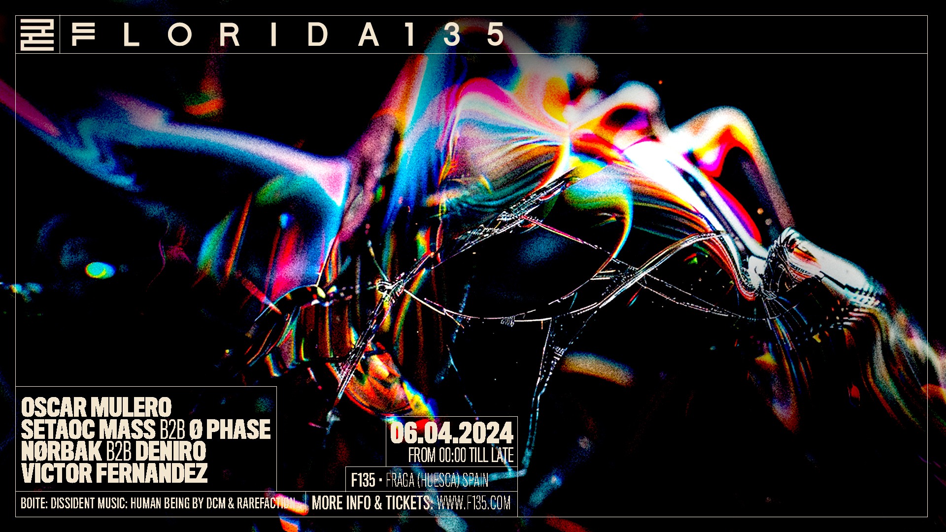 Florida 135 - Season Opening. Nightlife 30 Sep - 1 Oct CEST (+02:00) 23:59 30 Sep 2023 - 07:00 1 Oct 2023 CEST (+02:00) Florida 135. Cam. Sotet, 2, 22520 Fraga, Huesca, Spain. This event has ended. Info. Venue.. Prohibida la entrada a menores de 18 años. Ticket Refund Policy.