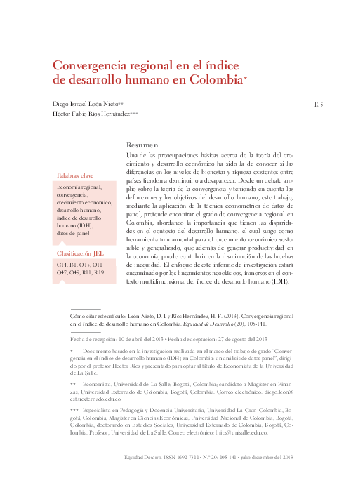 (PDF) Convergencia regional en el índice de desarrollo humano en Colombia Revista Equidad y
