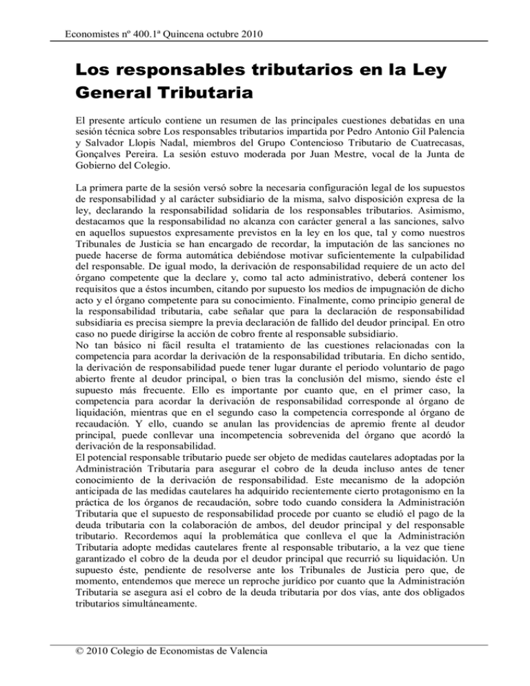 Los responsables tributarios en la Ley General Tributaria