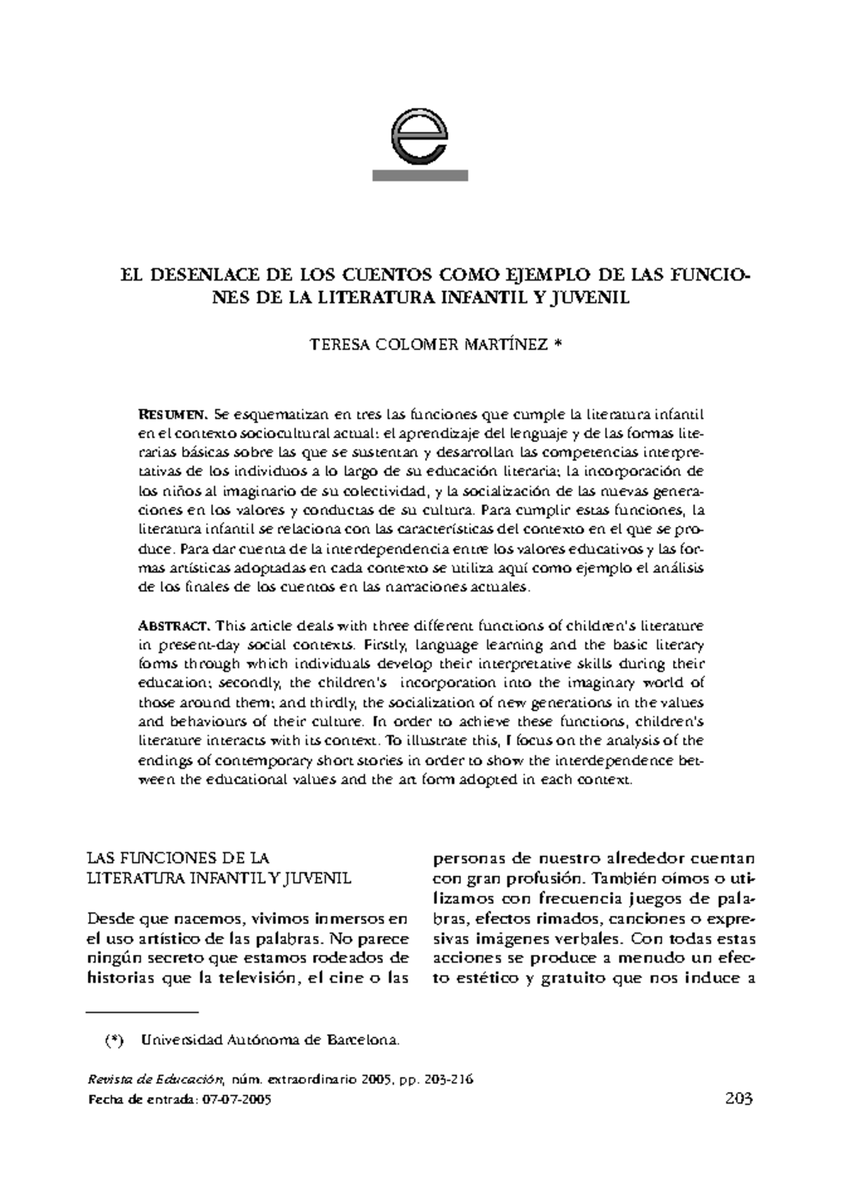 3B Colomer LAS Funciones DE LA Literatura Infantil LAS FUNCIONES DE LA LITERATURA INFANTIL Y