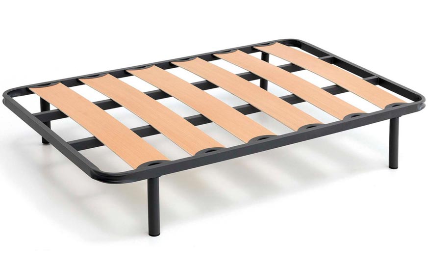 1. Somier de láminas. Son las bases de cama con rango más económico, pero eso no quiere decir que estés escogiendo mala calidad, ya que tienen ventajas interesantes. La más importante es la transpirabilidad, ayudan a que tu colchón seque mejor la humedad que absorbe de tu cuerpo durante el descanso.