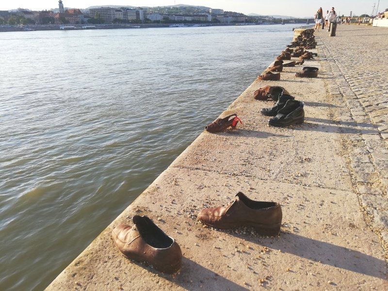 En Budapest (Hungría) un monumento recuerda la barbarie del Holocausto judío durante la II Guerra Mundial: los Zapatos a la orilla del Danubio. Situado en la orilla de Pest, entre el Puente de las Cadenas y el Parlamento de Budapest, en un tramo del paseo Duna-Korzó, 60 pares de zapatos de hierro fundido rinden homenaje a las mujeres.