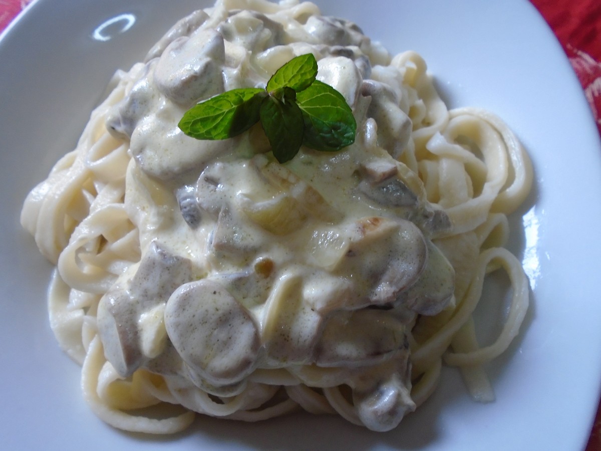 Pasta fresca con salsa de champiñones y nata (crema de leche) Cocina
