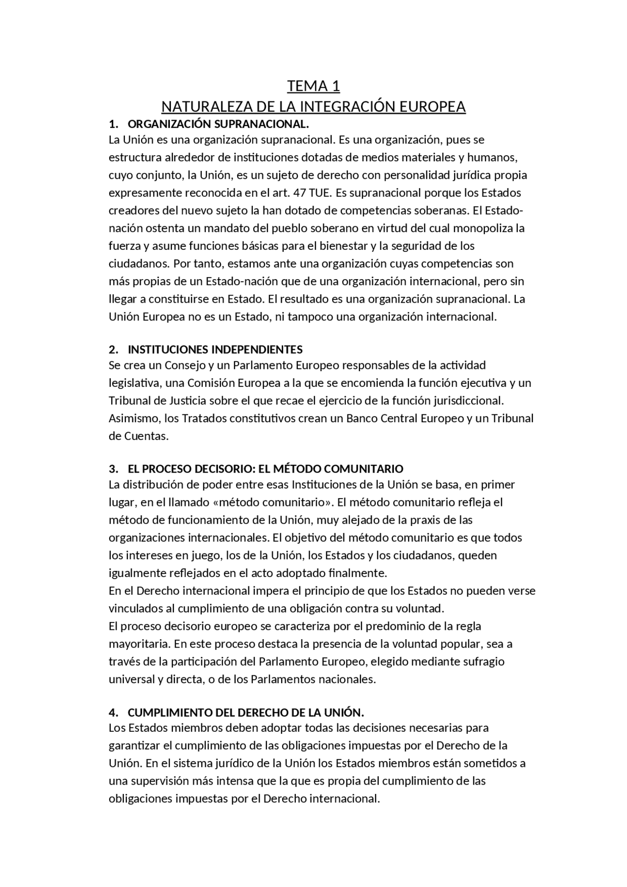 Apuntes tema 3 derecho de la union europea Resúmenes de Derecho de la Unión Europea Docsity