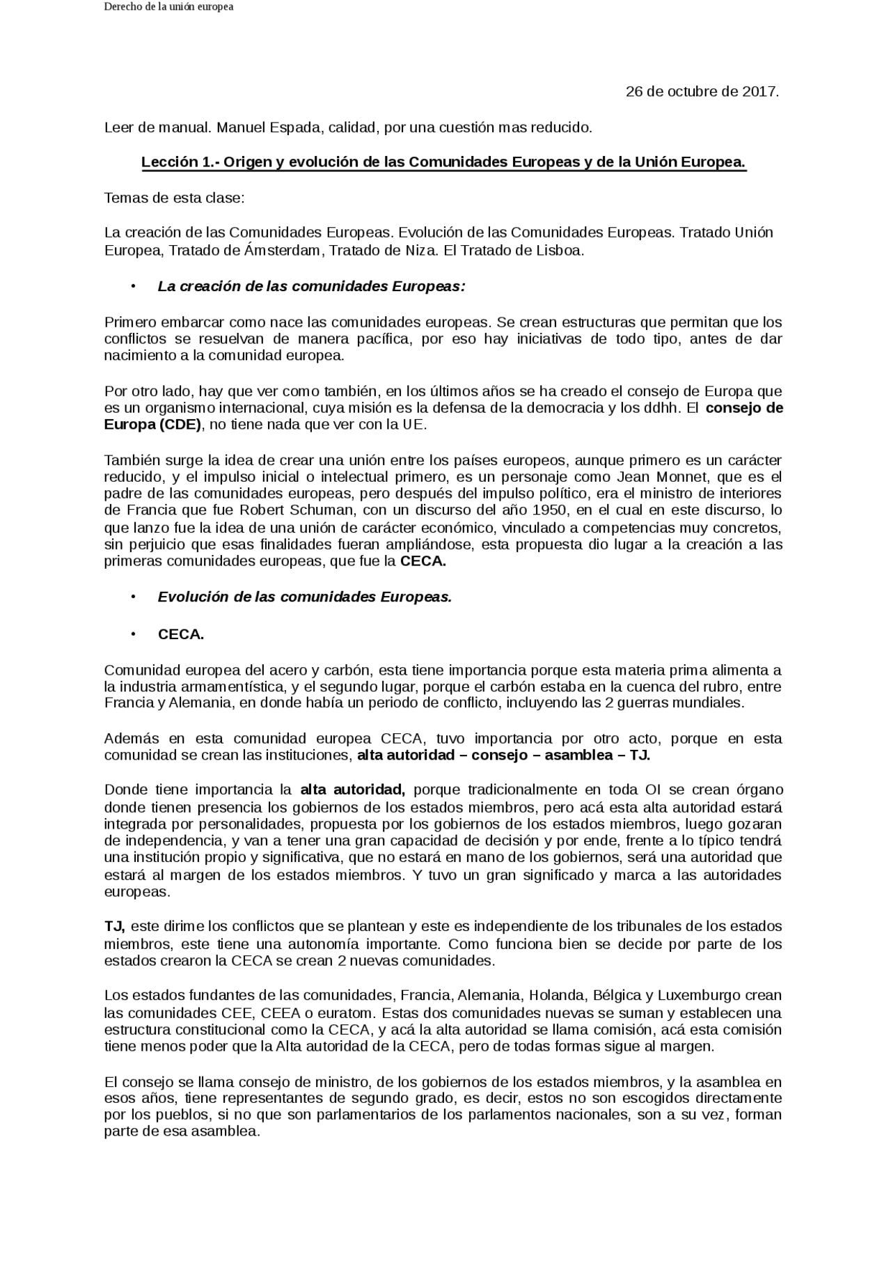 Derecho de la union europea Apuntes de Derecho de la Unión Europea Docsity