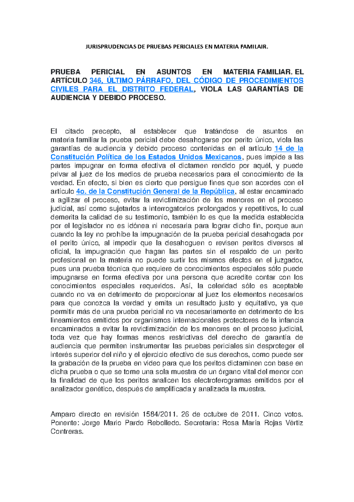 Pruebas periciales en materia familiar JURISPRUDENCIAS DE PRUEBAS