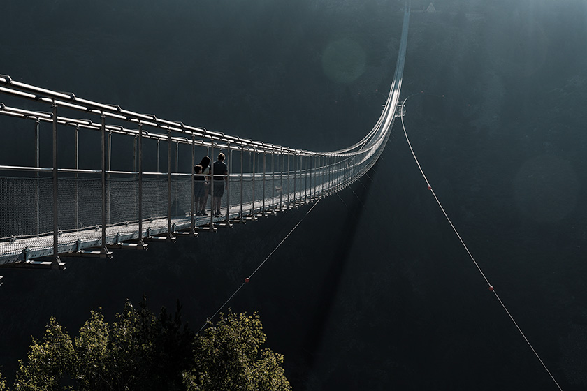 Uno de los principales alicientes de esta impresionante vía será su puente tibetano de 110 metros de longitud, el más largo de todo el país, y en el que ya se puede ver alguno de los cables.