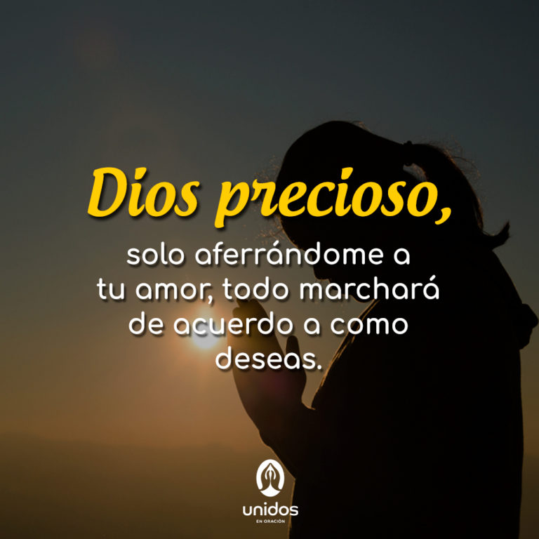 Dios precioso, solo aferrándome a tu amor, todo marchará de acuerdo a como deseas. Padre, solo en Ti encuentro sanidad, salvación y paz. Por eso esta oración la levanto hacia Ti para que me ayudes a afrontar con sabiduría y paciencia todo momento que parezca que no tiene solución. Porque sé, Dios de las Alturas que contigo todo lo puedo porque me fortaleces.